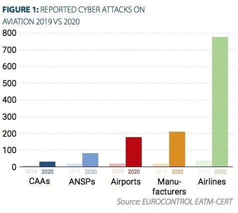 According to new Eurocontrol data analysing rising levels of risk for the industry from criminals, hackers, and state-sponsored cyber-attackers, commercial airlines accounted for 61 percent of all detected aviation-related cyber-attacks in 2020.