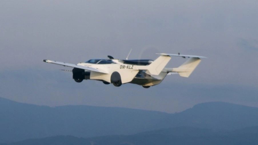 The prototype AirCar, created by Slovakian company Klein Vision, flew for 35 minutes between Nitra and Bratislava airports, before reverting into a car on touchdown and driving into the centre of the nearby town.