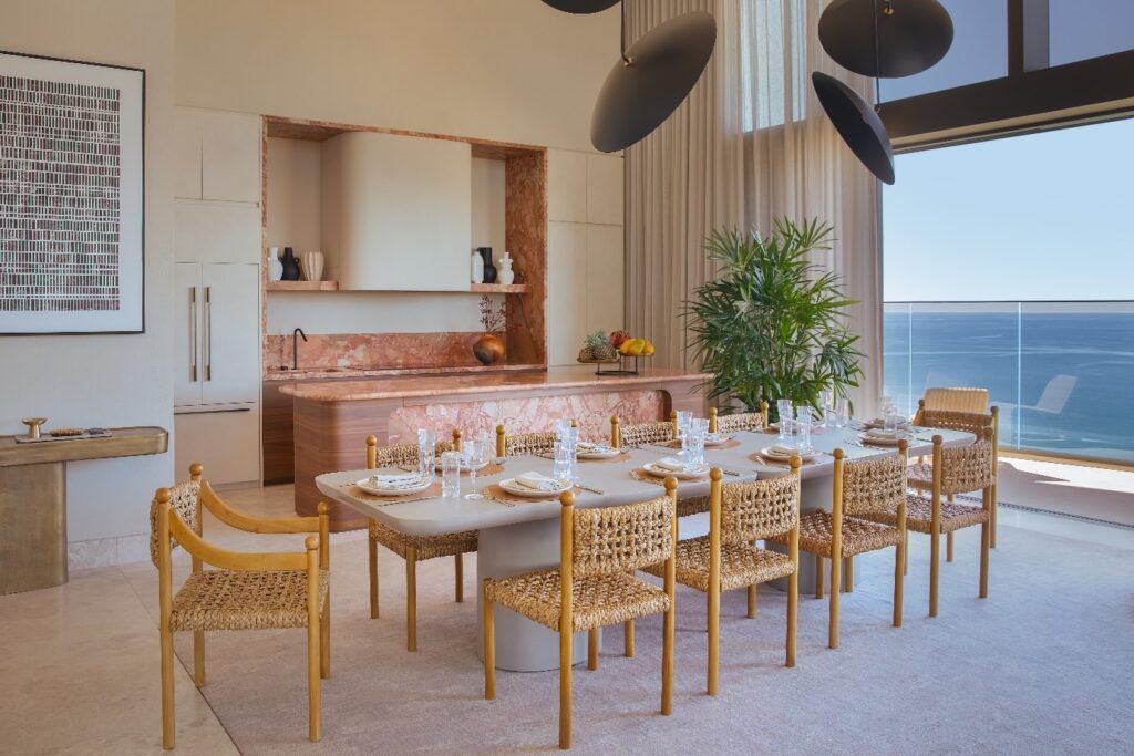 Conceived by the award-winning Los Angeles design studio, Studio Carter, The Sky House embodies Mondrian’s distinctive design philosophy — bold, artistic, and effortlessly refined — while harmonising with the relaxed rhythm of the southern Gold Coast. The result is a residential masterpiece that feels both monumental and deeply personal, seamlessly merging sculptural form with organic sophistication.