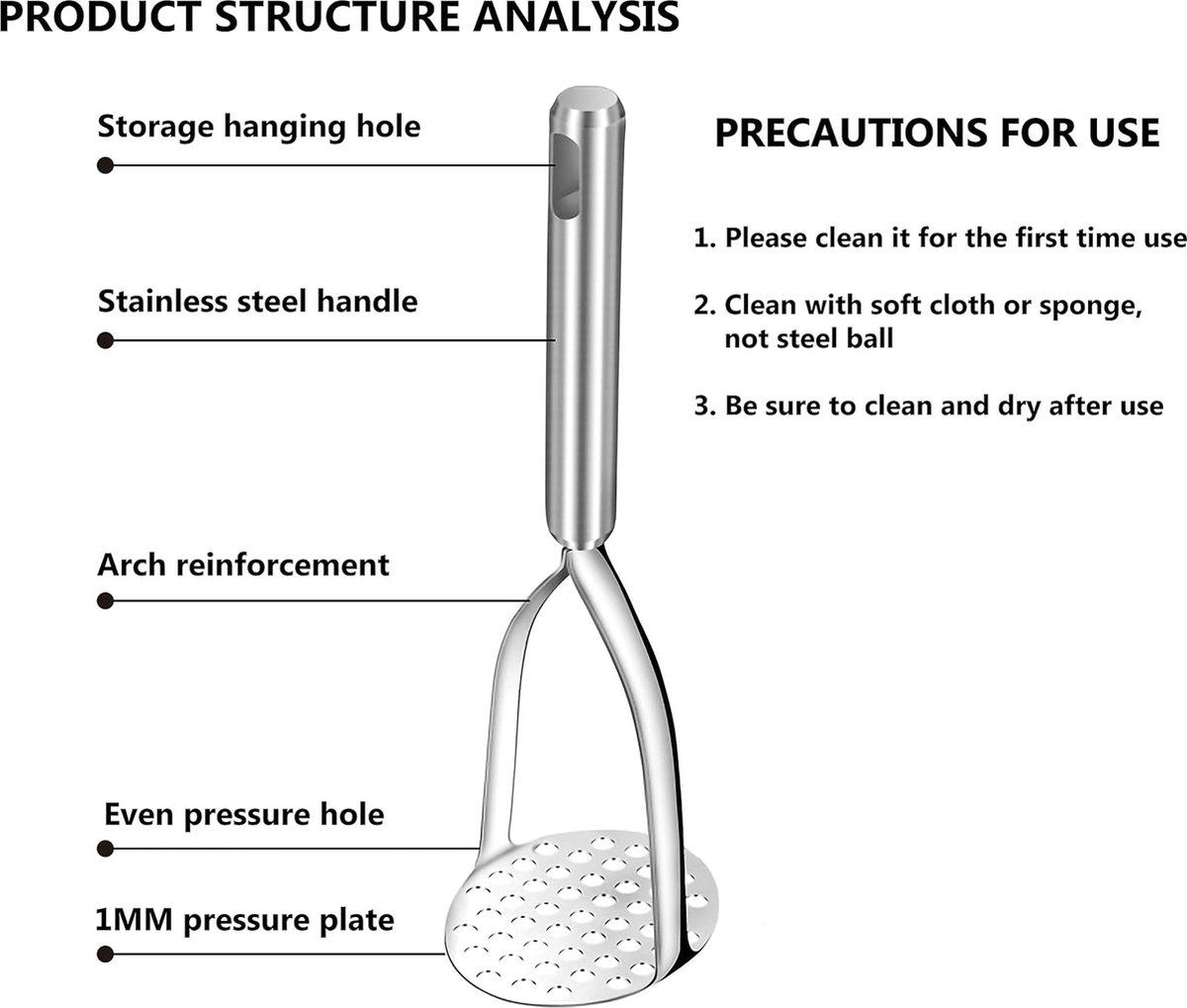 Wow, deze aardappelstamper maakt echt heerlijke romige puree! Gemaakt van volledig roestvrij staal dus gaat jaren mee en kan gewoon in de vaatwasser. Hij heeft twee verschillende gaatjes (6mm en 9mm) voor de perfecte textuur. De handgreep is extra breed met antislip rubber - perfect om met twee handen te werken. Ideaal niet alleen voor aardappelen, maar ook voor pompoen, worteltjes of zelfs bananen voor babyvoeding. Met 17cm hoog past hij perfect in elke keukenlade. Geen gedoe meer met klonterige puree - binnen no-time heb je een professioneel bijgerecht klaar!